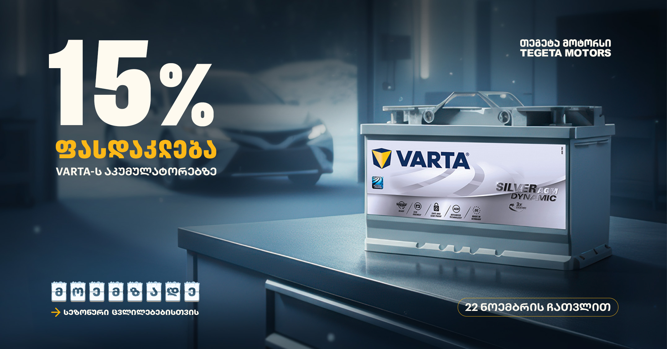 „თეგეტა მოტორსი“ მძღოლებს მოუწოდებს, ზამთრისთვის სამზადისს პასუხისმგებლობით მოეკიდონ და ავტომობილის გამართვისთვის მომხმარებელს სთავაზობს: 15%-იან ფასდაკლებას აკუმულატორების სრულ ასორტიმენტზე და გაორმაგებულ ქეშბექს ზამთრის საბურავებზე.