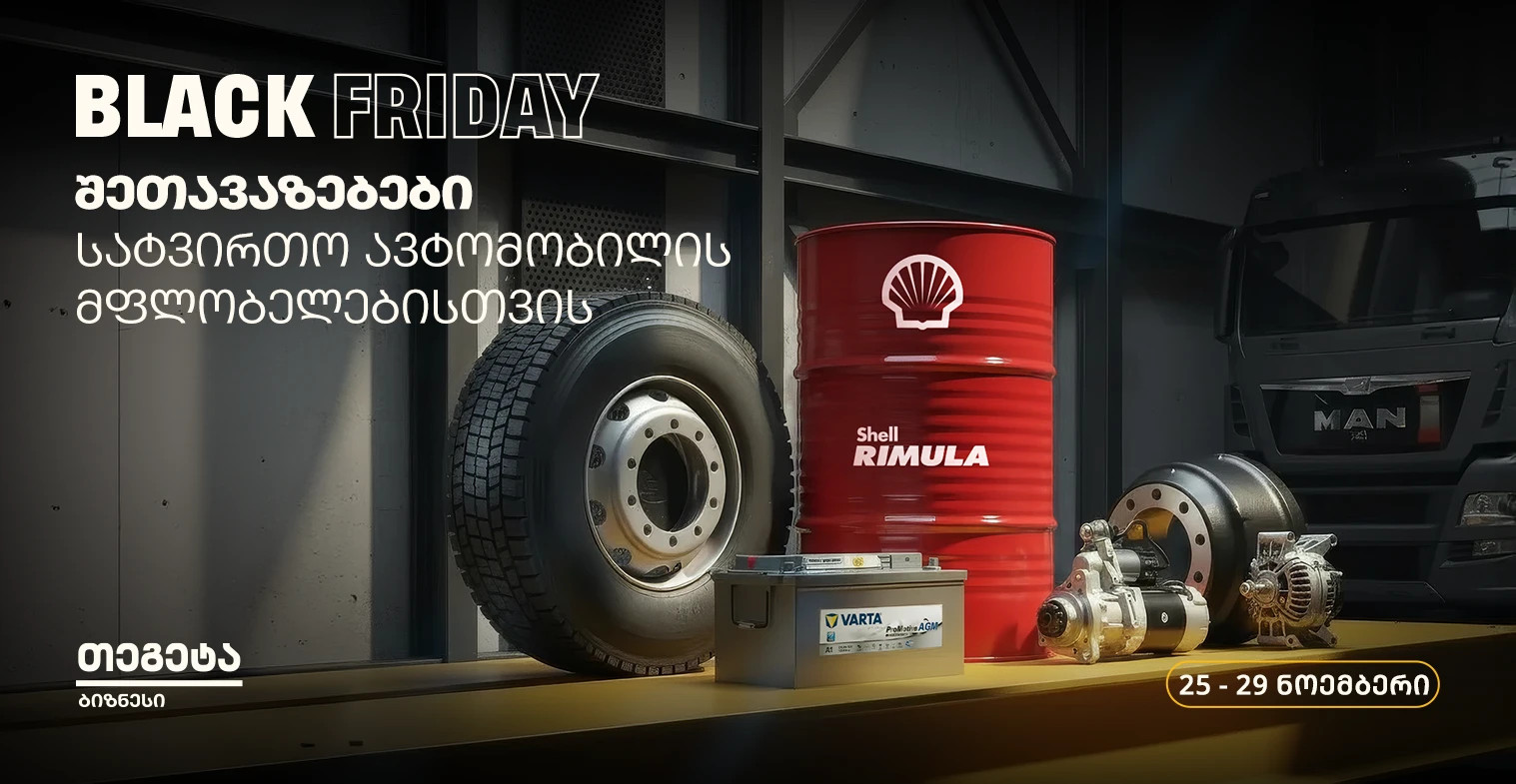 უპრეცედენტო შეთავაზება სატვირთო და სპეცტექნიკის მფლობელებს „თეგეტა ბიზნესისგან“ - Black Friday-ს კვირეული დაიწყო